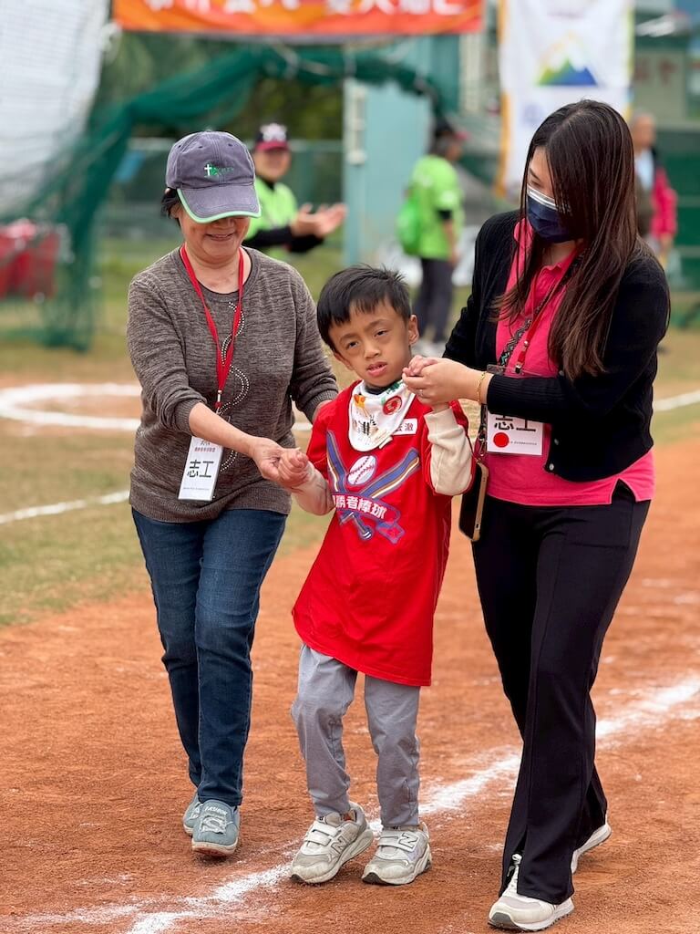 在花蓮中原國小擔任學前特教助理員的余惠琳老師,來自佳蒼聖教會,從台灣得勝者棒球聯盟第一屆開始,每一屆都不曾缺席。當初因著教會與活動創辦人威博士的連結,一群弟兄姊妹一同響應成為志工。她微笑說:「我每屆都有來,因為對特教孩子不排斥,平常也常常接觸,所以願意用行動支持這個有意義的活動。」這屆她陪伴一位安靜、害羞、不太主動互動的孩子,但在溫柔陪伴中,建立了信任與默契。她也分享,有孩子從過去的躁動不安到如今變得穩定,「看到他們的成長,真的很替他們開心。」