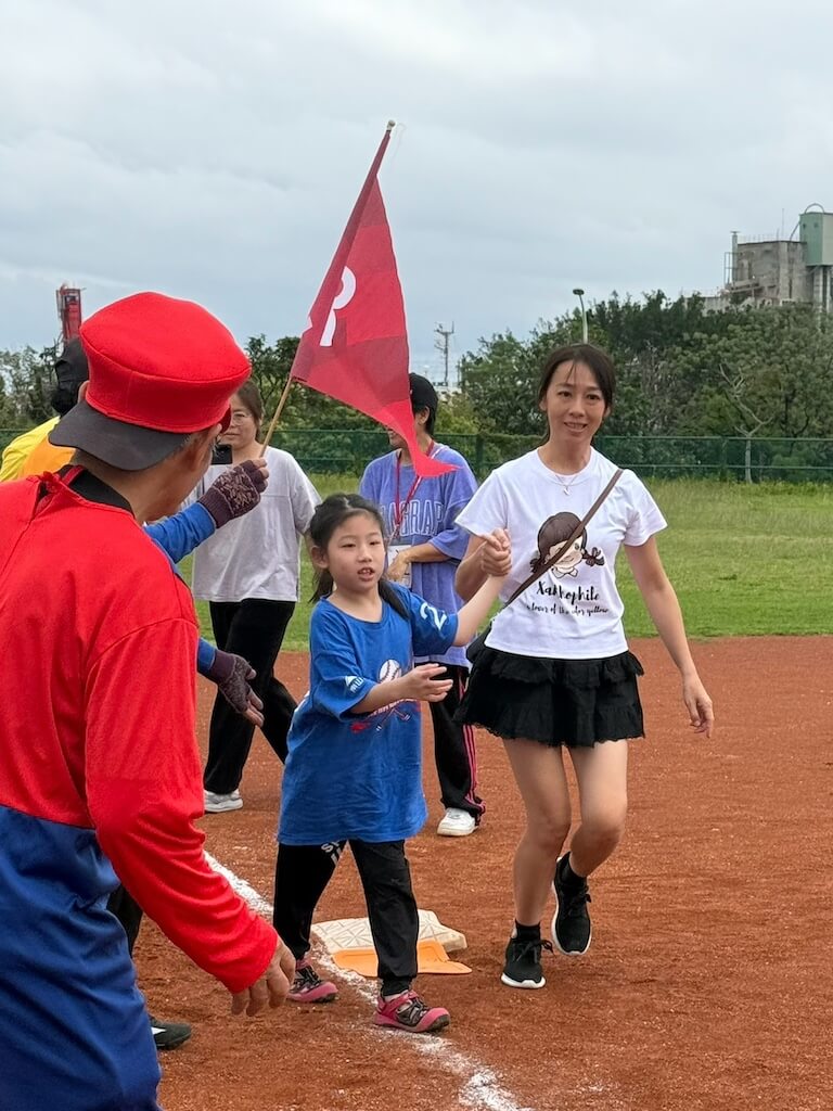 萌萌的第一次參與並不順利,因報到流程不熟,錯過點名、無法即時上場,當場情緒崩潰、大聲尖叫。媽媽坦言:「我當時其實很想放棄,但還是硬著頭皮讓她完成揮棒跑壘,雖然臉上寫滿『我不要』,但她還是做到了。」這段混亂的經驗,卻也成為轉機。活動團隊在了解孩子的狀況後,調整出場順序,安排萌萌擔任「最後一棒」,減少壘包間的等待壓力,讓她能在全場加油聲中一次跑完全壘。媽媽感動地說:「第二場的用心安排,讓我知道主辦單位真的很重視每一個孩子。」
